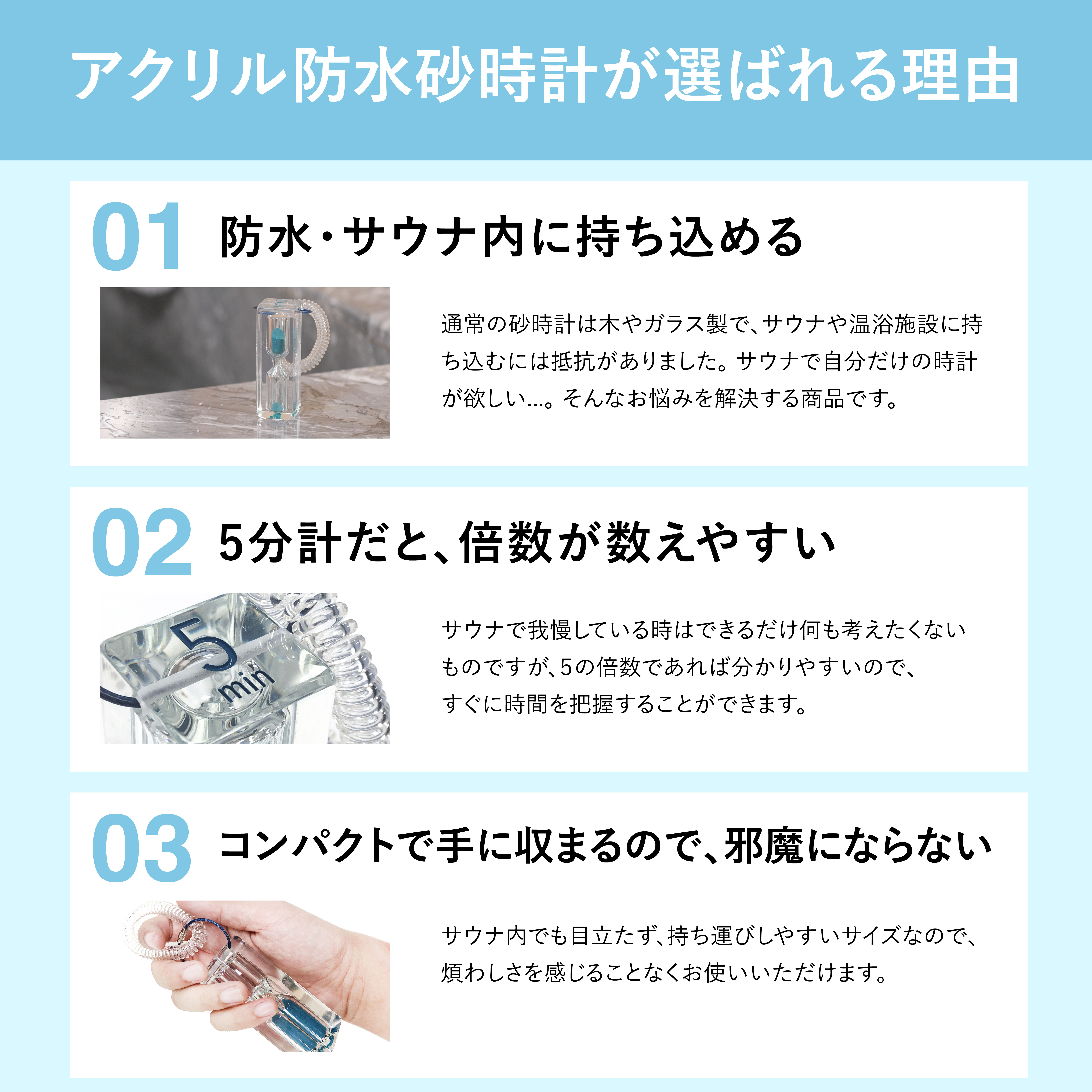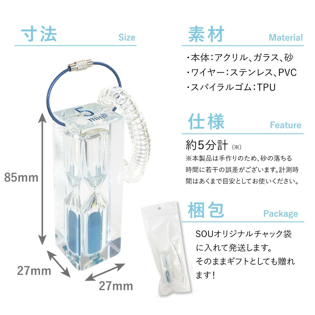 砂時計は通常3分が多い中、5分計を独自開発し